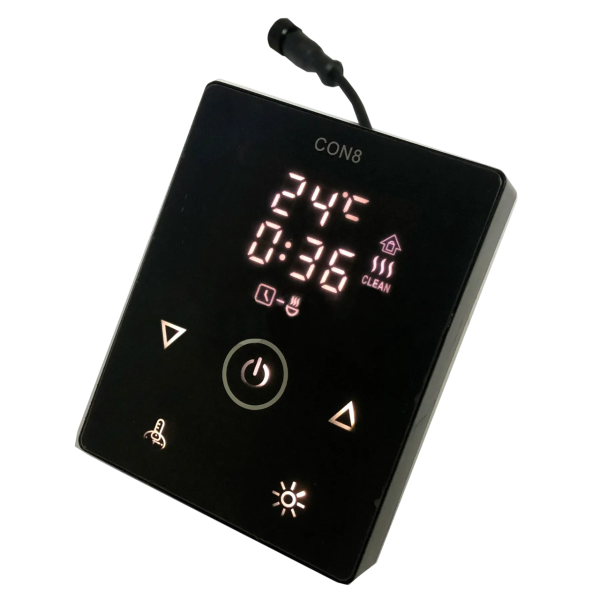 Пульт Ecoflame CON 8 (3-9 кВт) 380V – это современный и функциональный контроллер, предназначенный для управления электрокаменками мощностью от 3 до 9 кВт. Благодаря интуитивному интерфейсу он позволяет легко настраивать такие параметры как температуру в парной, время работы печи, отложенный старт и управление освещением.