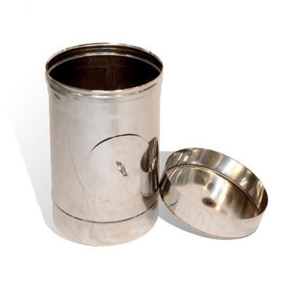 Ревизия Ø 150 мм используется для очистки, проверки дымохода, а также для отвода конденсата. Изготовлен из нержавеющей стали и является одностенной, толщиной стенки 1 мм, рабочей температурой до 600 °С.