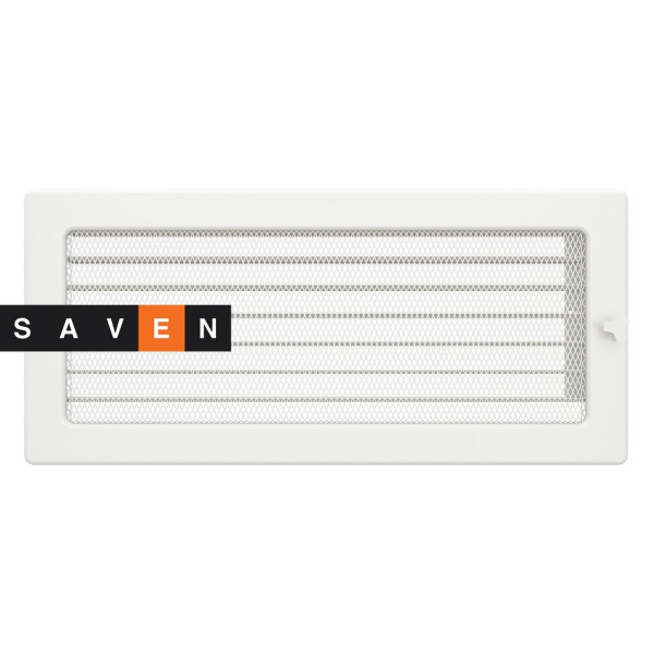 Вентиляційна решітка для каміна SAVEN 17х37 біла з жалюзі з серії CLASSIC призначена для декоративного оздоблення технологічних отворів в тепловій камері каміну.