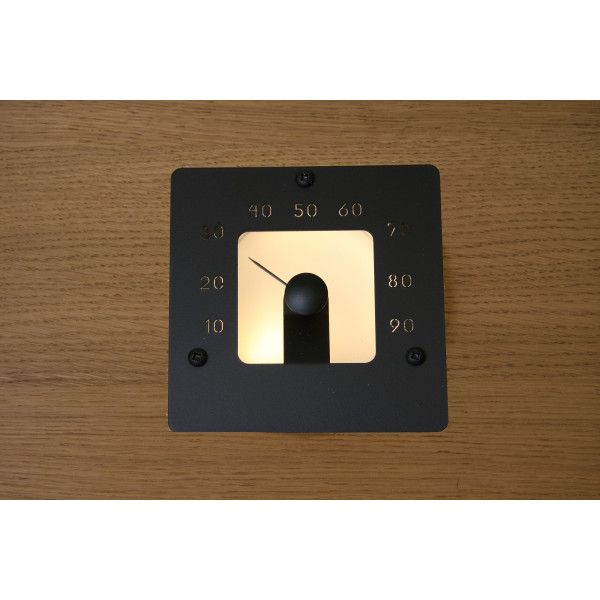 Гігрометр Cariitti SQ (1545849) з підсвічуванням*. Матове скло, шкала із нержавіючої сталі. Підсвічується одним волокном діаметром 2-6 мм. Встановлюється під час обшивки сауни панелями. Розмір термометра 120х120 мм, глибина ніші для установки 40 мм. Виступає над поверхнею обшивки на 20 мм. Кріпиться до стіни трьома гвинтами з нержавіючої сталі, що входять до комплекту.