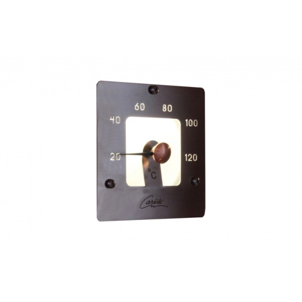 Встановлюється під час обшивки сауни. Розмір термометра 120х120 мм, глибина ніші для установки 40 мм.