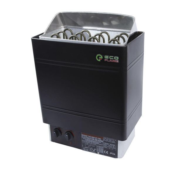 Кошик кам'янки здатний вмістити до 25 кг каменів, що забезпечує рівномірне нагрівання парної. Максимальна температура, яку можна досягти з цією моделлю, становить 110 °С. Крім цього, піч EcoFlame вирізняється компактністю, що робить її ідеальним вибором для невеликих приміщень.