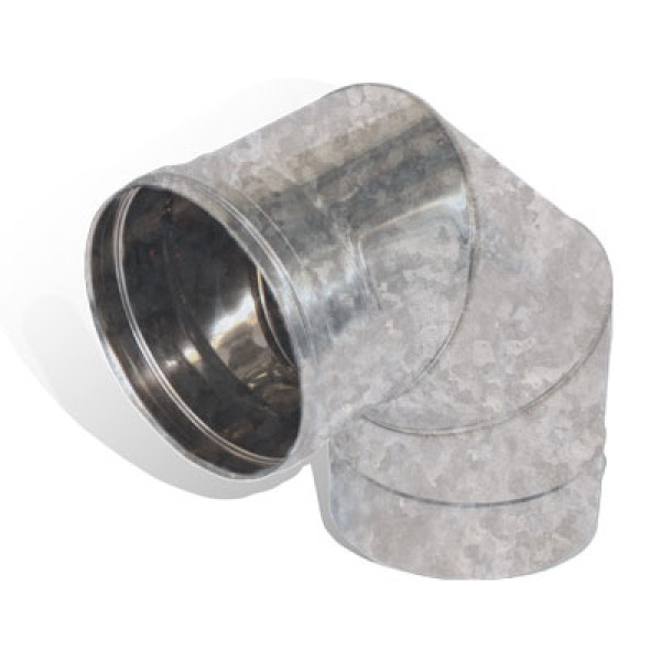 Коліно 90° Ø 125 мм застосовується для повороту вентиляції або повітропроводу. Виготовлене з оцинкованої сталі і є одностінним, товщиною стінки 0,5 мм, робочою температурою до 420 °С, при більш високій температурі, цинк починає плавитись, що призводить до пошкодження коліна, тому оцинковані труби не рекомендується використовувати, в якості димоходу, для високотемпературних джерел тепла.
